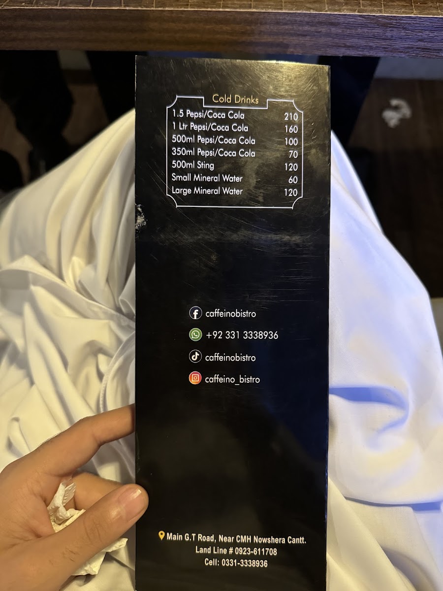 Welcome to Caffeino Bistro, a charming café nestled near CMH Mall Road in Nowshera Cantonment. This cozy spot is a haven for food enthusiasts and coffee lovers alike.